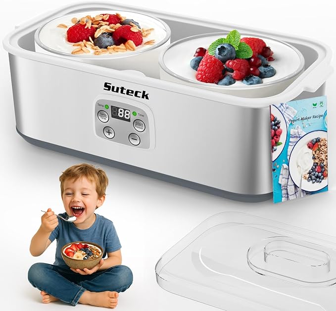 Suteck Yogurt Maker - Stainless Steel Yogurt Makers with Adjustable Time & Temp Control,Automatic Shut-Off & Constant Temper for Homemade Greek, Probiotic Yogurt, BPA-Free 2 Yogurt Bowls (2 Quart) -