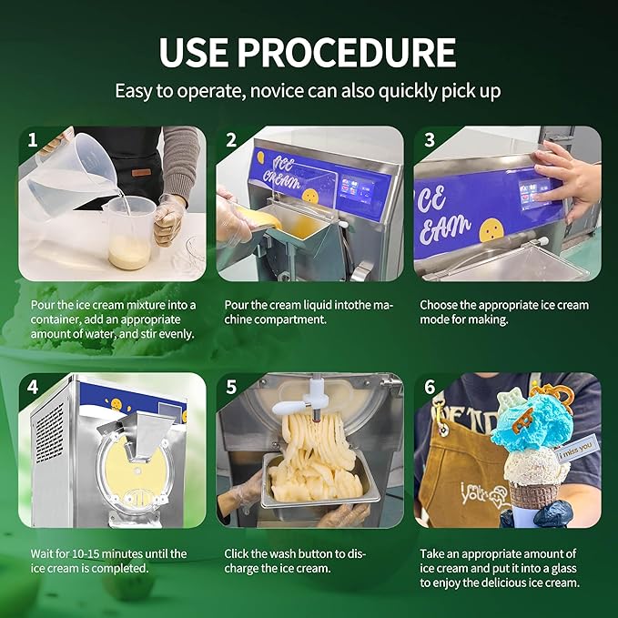 13Gal/H Gelato Batch Freezer, Hard Serve Ice Cream Machine Commercial, 12L Cylinder Italian Ice Machine, Frozen Yogurt Sorbet Maker for Dessert Shops, 5" Touch Panel -