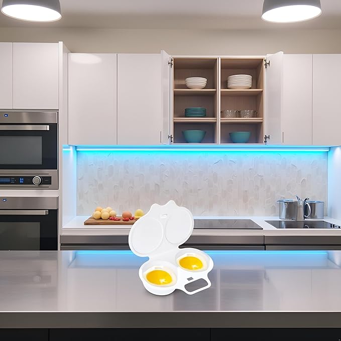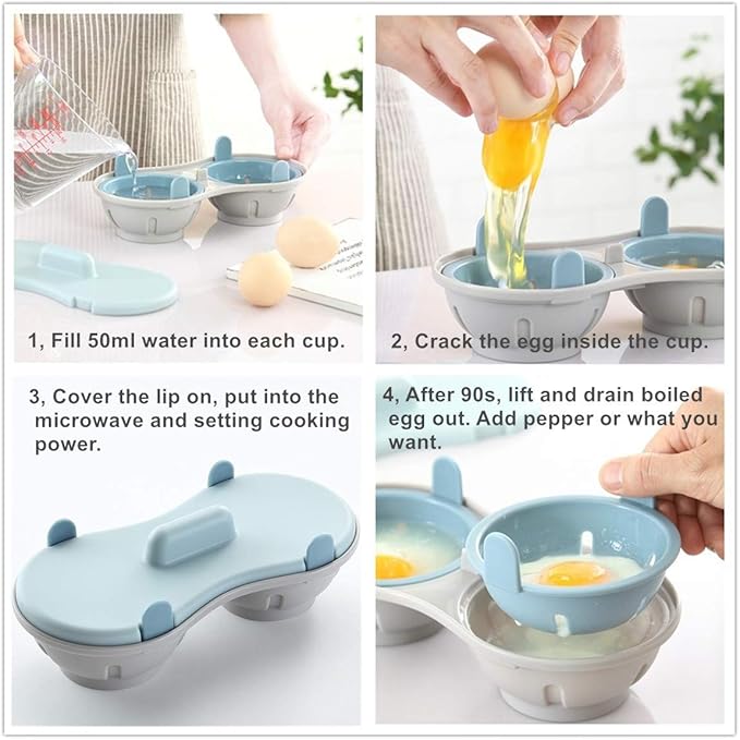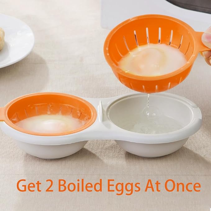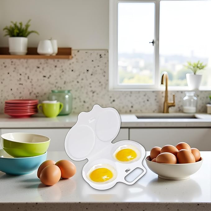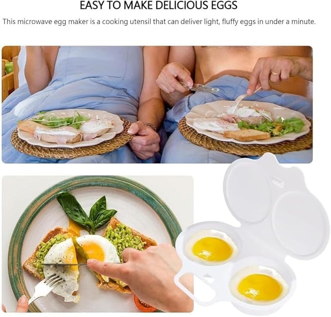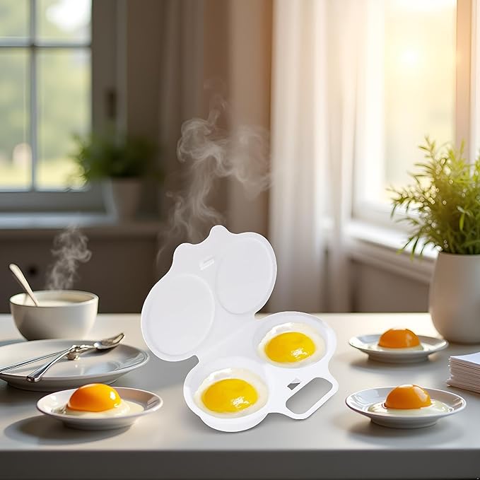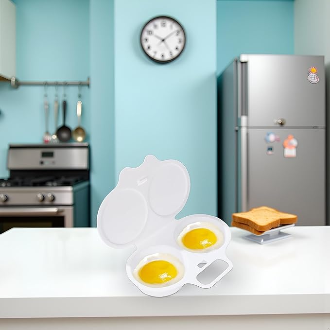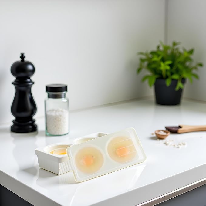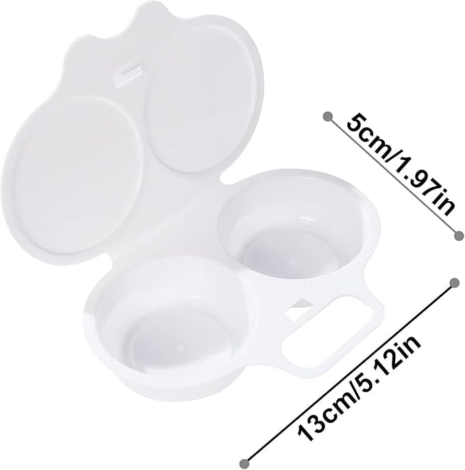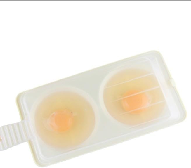 2-Cavity Nonstick Microwave Egg Poacher with Lid -White Plastic Egg Cooker for Perfect Poached Eggs -