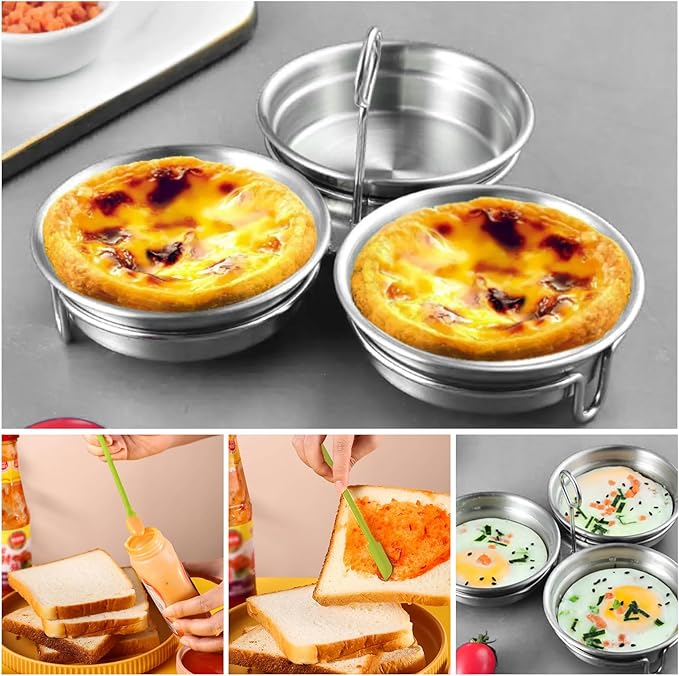 Stainless Steel Egg Poacher - 3 Cup Nonstick Poached Egg Maker with Oil Brush and Spoon for Breakfast -