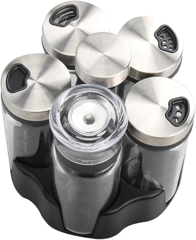 TINMIX Revolving Spice Rack Organizer, Rotating Seasoning Holder Shelf for Kitchen Countertop Cabinet, 4 Large 200ml Glass Jars + 1 Oil Dispenser Bottle