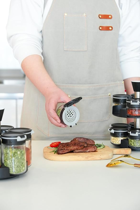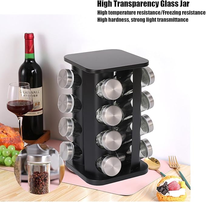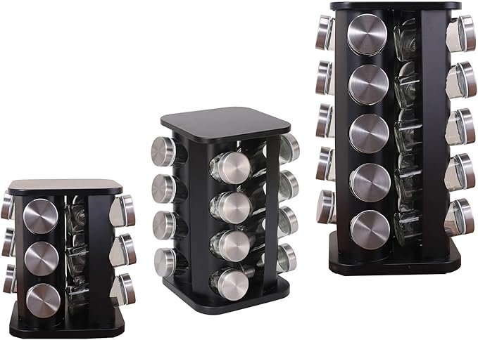 Spice Rack, Spice Rack Organizers for Countertop, Rotating Countertop Spice Rack, Revolving Spice Rack for Kitchen, Kitchen Gadgets, Organizer Rack with Spice Jars (Black, SquareHead_20Jars) -