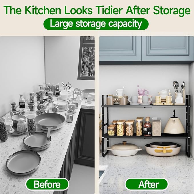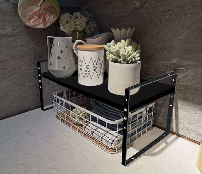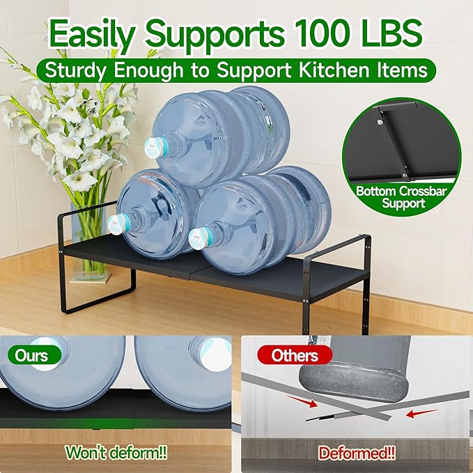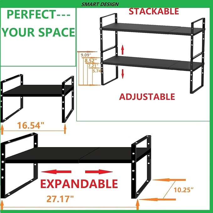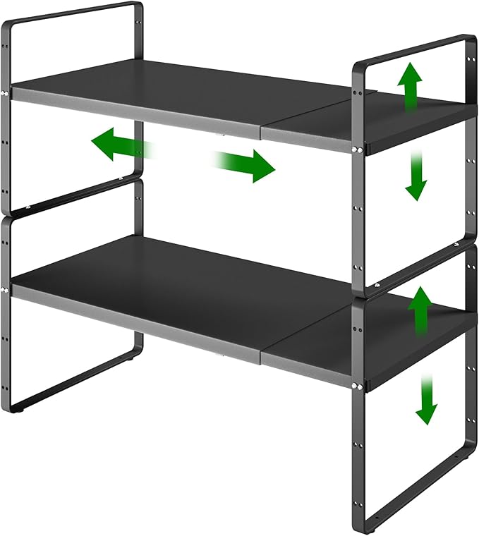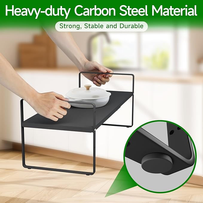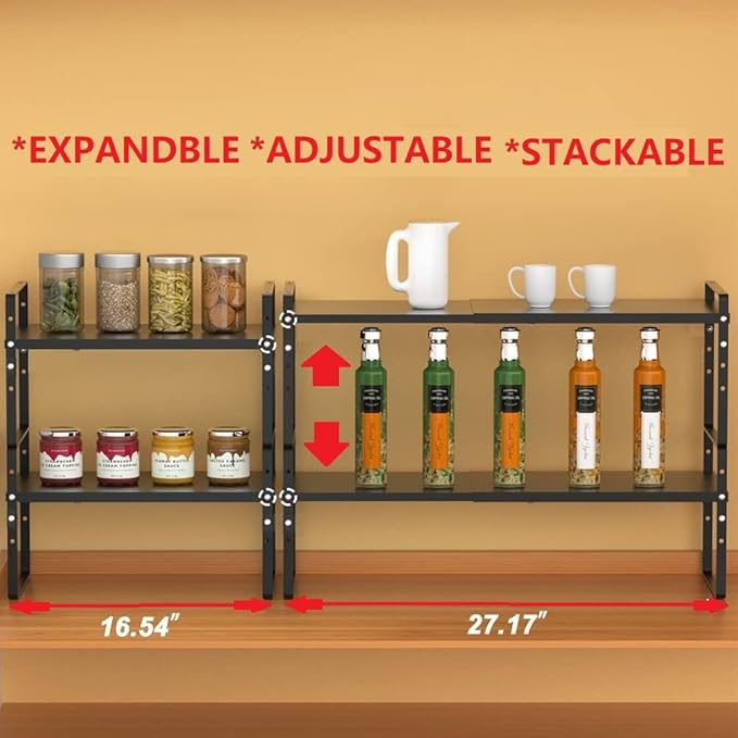 Expandable Stackable Spice Rack Cabinet Shelf Organizer in Cabinets Shelves Kitchen Cupboard Organization Stack up Racks Pantry Countertop Storage Large/Black 2 Packs -