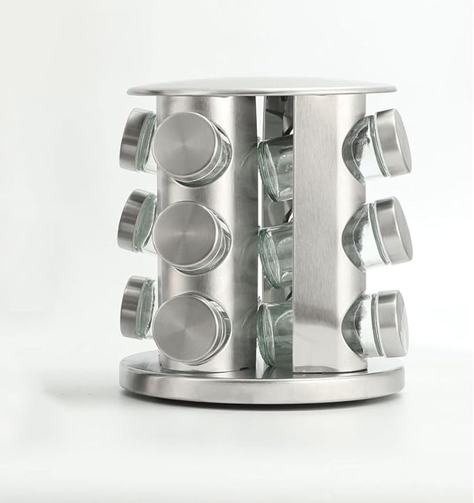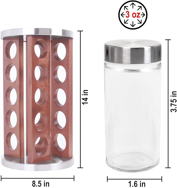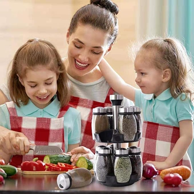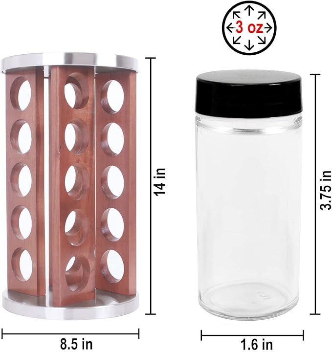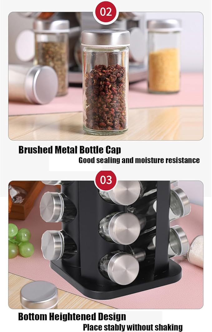 Revolving Spice Rack Organizer Storage for kitchen, Spice Stand Holder, Spinning Countertop Herb and Spice Rack Organizer with 12 Glass Jar Bottles Set -