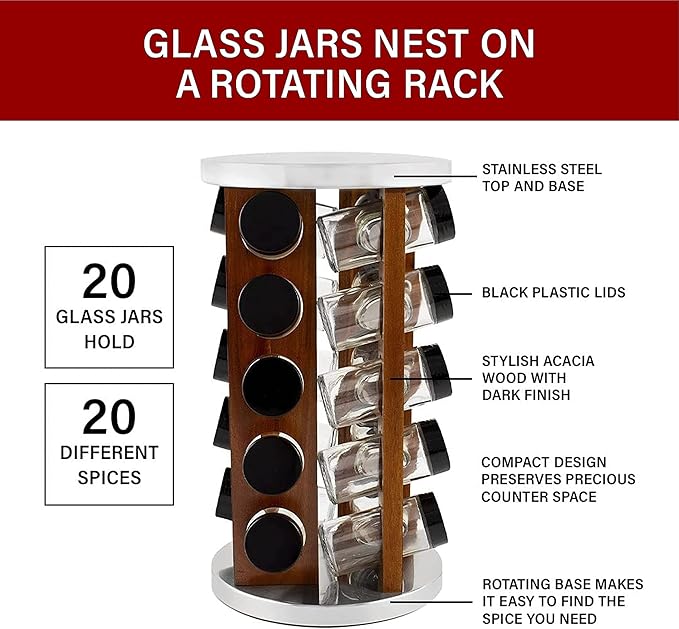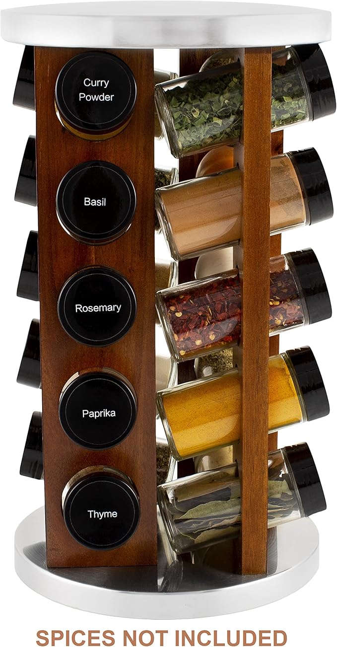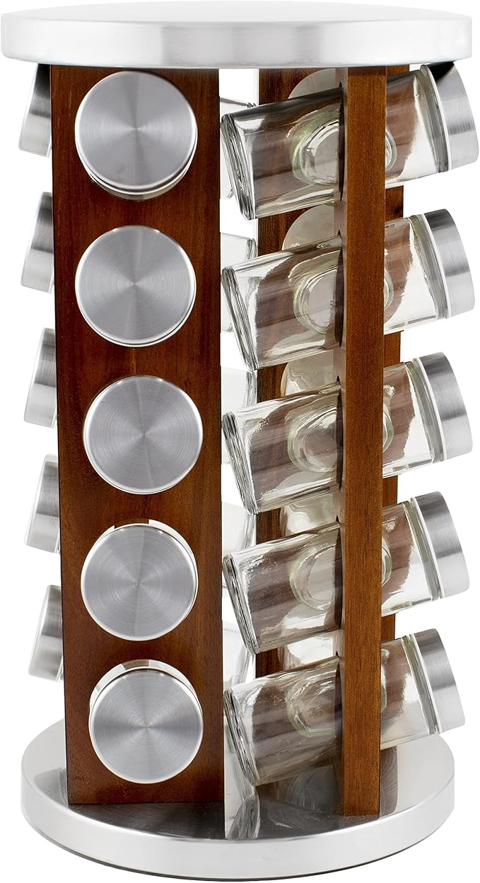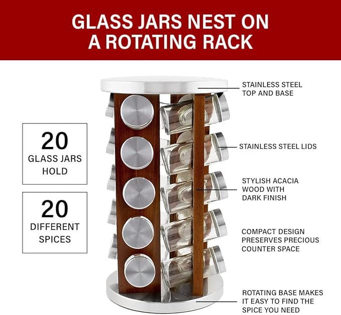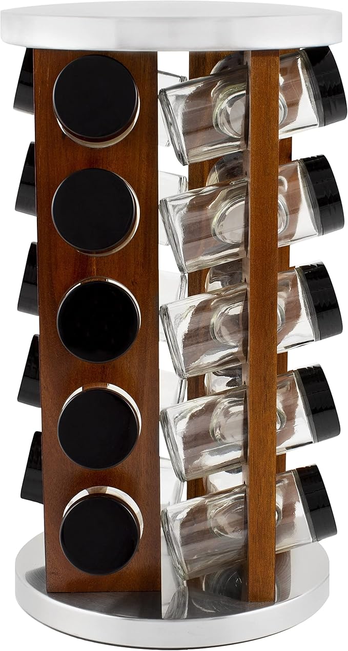 Orii 20 Jar Spice Rack with Spices Included - Tower Organizer for Kitchen Spices and Seasonings, (Natural Acacia Wood) -