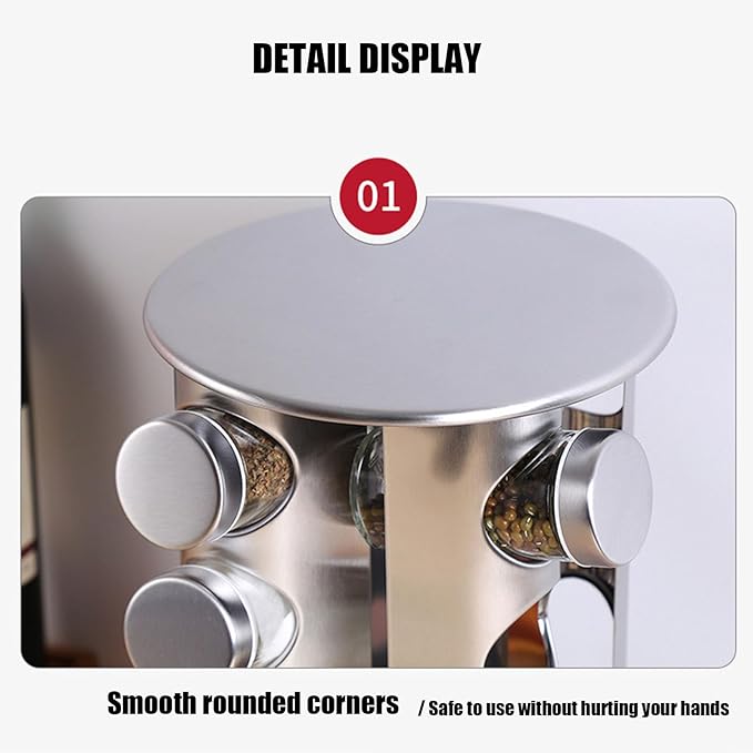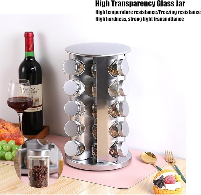Spice Rack, Spice Rack Organizers for Countertop, Rotating Countertop Spice Rack, Revolving Spice Rack for Kitchen, Kitchen Gadgets, Organizer Rack with Spice Jars (Silver, RoundHead_12Jars) -