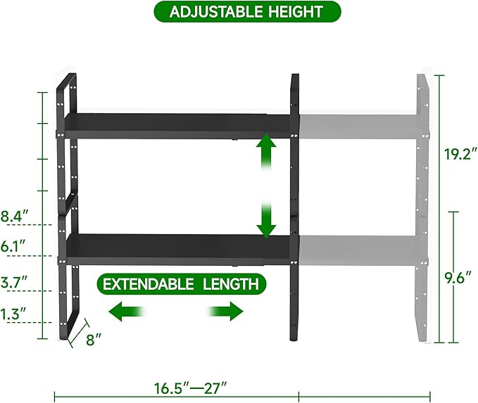 Expandable Cabinet Organizer Shelf, Adjustable Height Organizer Riser for Kitchen Cabinet Spice Rack Locker Pantry Cupboard Under Sink Countertop Desk Organization Metal Stackable Shelves -