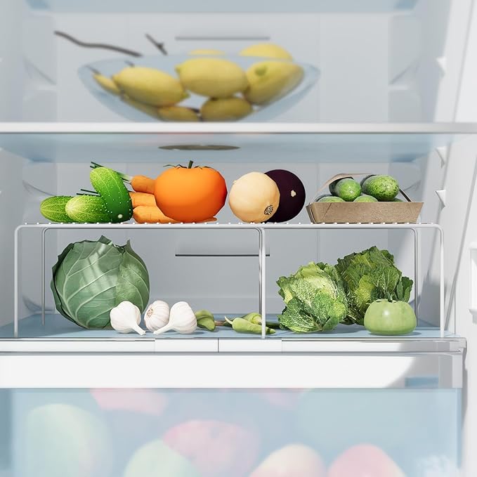 Expandable Storage Shelf, Pantry Organizers and Storage, Adjustable Rustproof Metal Wire Spice Rack, Space Saver Kitchen Storage Shelves for Pan, Pot, Countertop, Drawer, Fridge, Set of 4, White -