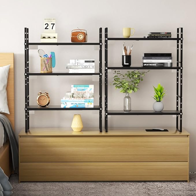 Expandable Stackable Spice Rack Cabinet Shelf Organizer in Cabinets Shelves Kitchen Cupboard Organization Stack up Racks Pantry Countertop Storage Medium/Black 3 Packs -