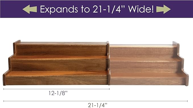 Acacia Wood 3 Tiered Spice Rack, 3 Tier Spice Organizer for Cabinet or Kitchen -