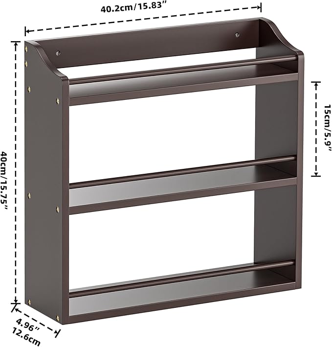 3 Tier Bamboo Wood Spice Rack, Seasoning Bottles Jars Organizer Shelf for Spices or Craft Supplies, Kitchen Counter or Wall Mounting (Brown) -