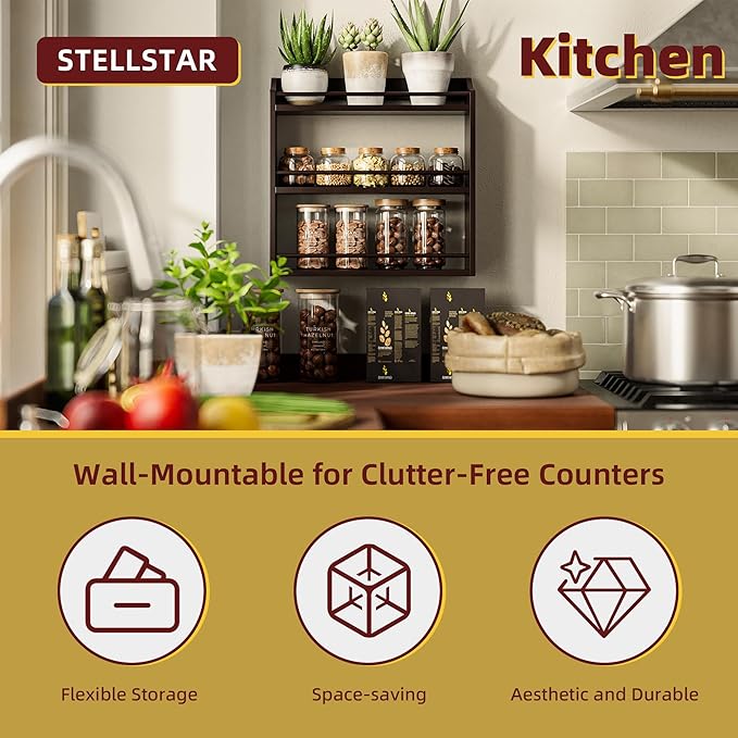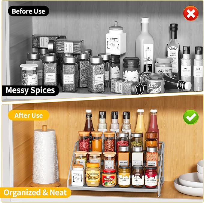Tiered Spice Rack Organizer for Cabinet, Wooden Spice Rack for Countertop, Spice Shelf organizer Spice Organization for Cabinet -