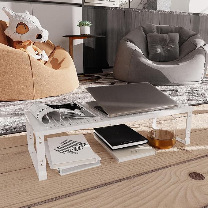 Expandable Adjustable Stackable Kitchen Organizer, Spice Rack,Metal Pantry Storage Shelves Racks,Counter Shelf for Cabinets, Countertop, Cupboard(2 Packs/Medium/White) -