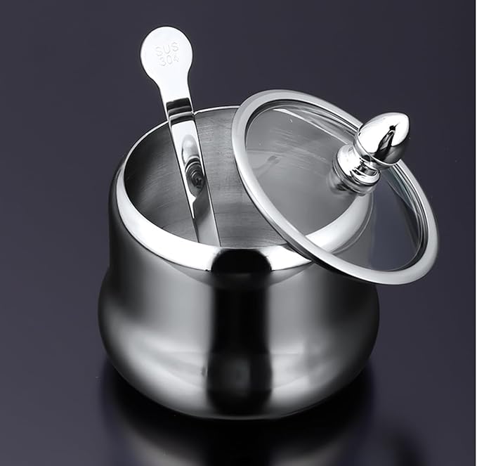 TENTA TENTA KITCHEN 18/8 Stainless Steel Seasoning Box Condiment Jar Set Spice Jar Spice Rack Condiment Cruet Bottle Salt Pepper Sugar Storage Organizers with 3 Serving Spoons (Glass Lids) -