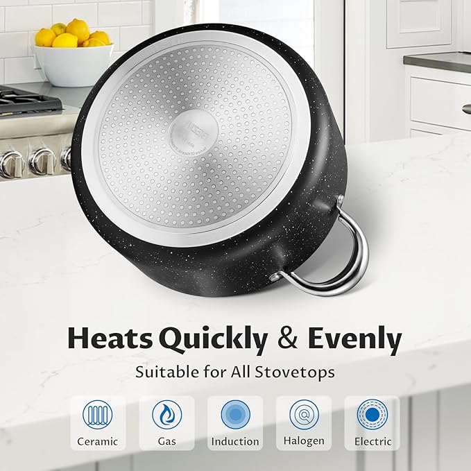 CAROTE 6 Qt Nonstick Stock Pot with Lid Soup Pot, 6 Quart with Lid, Casserole Super Easy to Clean Non Stick Cooking Pot Cookware PFOA Free, White Granite -