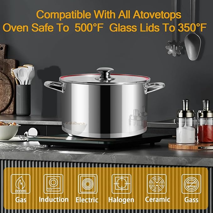 Stainless Steel Stockpot with Lid - 10 Quart Soup Pot for Induction Cooking -