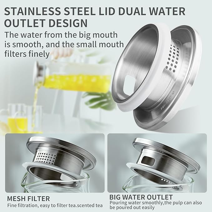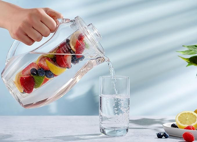 53OZ Glass Pitcher with Lid and Spout, Water Jug, 1580ml Carafe for Hot/Cold Water, Large Iced Tea Pitcher for Coffee, Juice and Homemade Beverage -