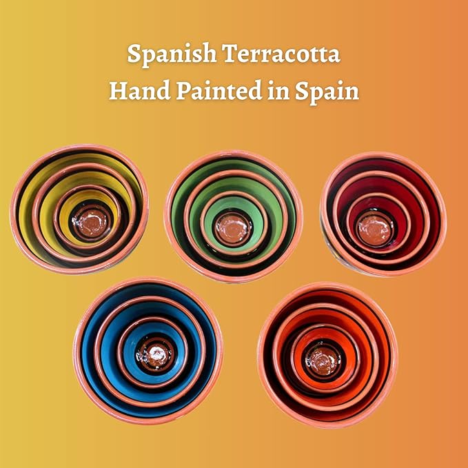Cactus Canyon Ceramics Salsa Bowls - Spanish Terracotta Multicolor Decor - Small Serving Bowl (European Size), Festive Dinnerware 5 Piece Set - Dishwasher & Microwave Safe