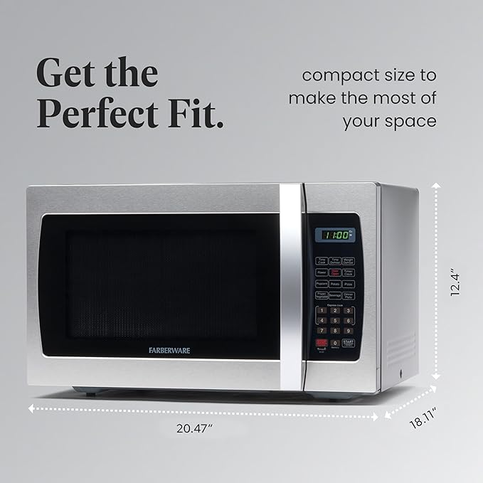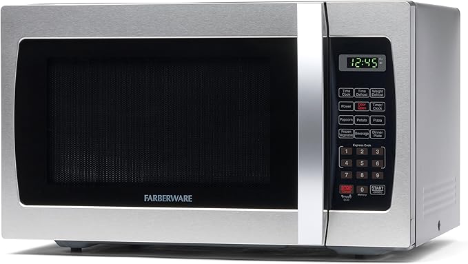Farberware Countertop Microwave 1000 Watts, 1.3 Cu. Ft. - Microwave Oven With LED Lighting and Child Lock - Perfect for Apartments and Dorms - Easy Clean Stainless Steel