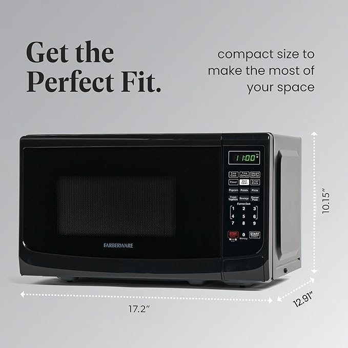 • PERFECT SIZE: Measuring 0.7 cu ft, this microwave is the ideal small-space solution that offers full-sized cooking in a compact space. It features an easy-to-clean interior and exterior and is perfect for the home or office.