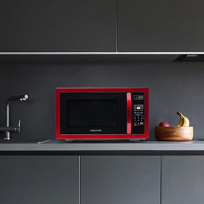 Farberware Countertop Microwave 1000 Watts, 1.1 cu ft - Microwave Oven With LED Lighting and Child Lock - Perfect for Apartments and Dorms - Easy Clean Metallic Red