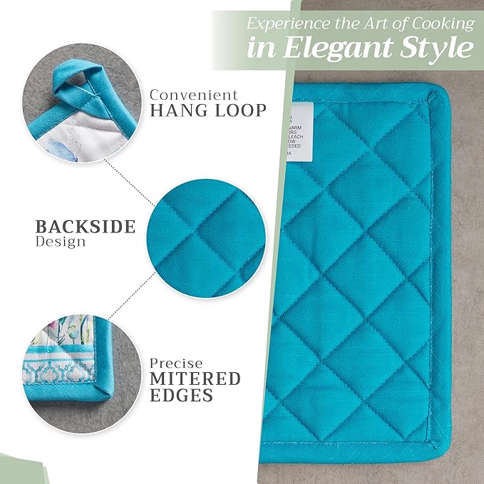 • 100% Quilted cotton: Made from premium quilted cotton, our pot holder ensures safe handling of hot pans or dishes. The soft, durable build provides excellent heat resistance and grip—perfect for everyday cooking and baking needs