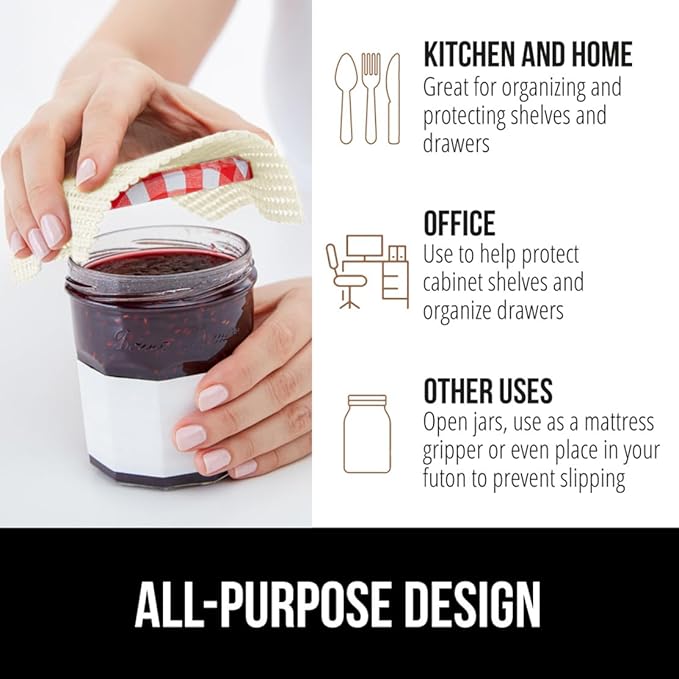 • KITCHEN, OFFICE, OR BATHROOM: liner can be used in several areas of your home; use it in your kitchen, pantry, work station, office room, laundry room, bathroom vanity shelves and more; perfect for organizing your space and home; use any excess liner pieces for opening jars and can also work great for a slipping futon, couch cushions, or mattresses