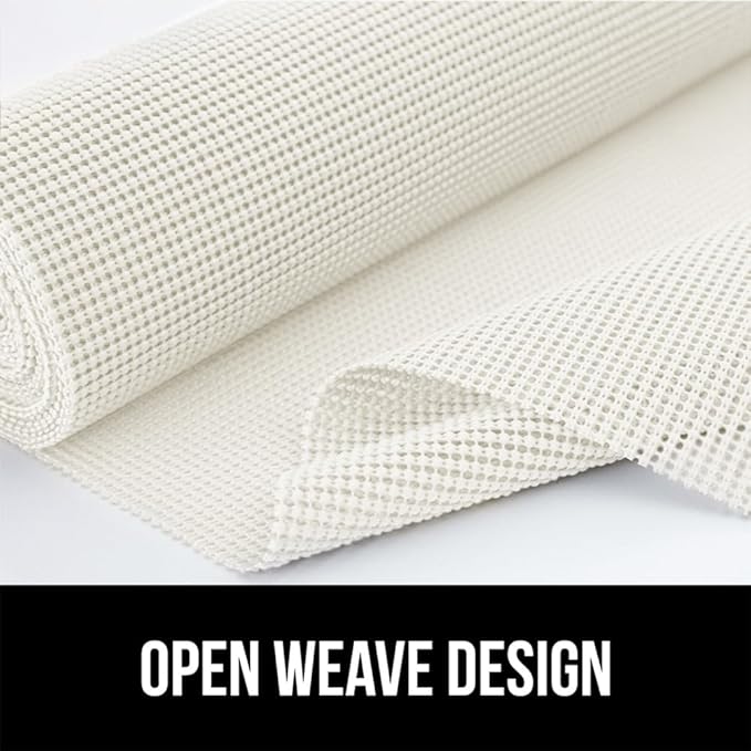GORILLA GRIP powerGRIP Drawer Shelf and Cabinet Liner, Thick Strong Hold, Non-Adhesive Liners Protect Kitchen Cabinets and Cupboard, Bathroom Drawers, Easy Install, Breathable Mat, 12" x10' Snow White