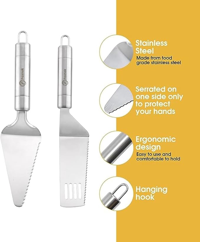 • DURABLE & LONG-LASTING: Pie Cutter Built to withstand daily use, our pie server and cake slicer are made from high-quality, rust-resistant stainless steel. Enjoy years of effortless slicing and serving without worrying about wear and tear. Suitable as pie slicer, pie spatula, serving spatula, cake servers for whippy cake, pie scooper
