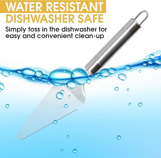• EASY TO CLEAN: Cleaning up after a delightful dessert is hassle-free with our pie server and cake slicer set. The stainless steel construction ensures easy washing and is dishwasher safe, saving you time and effort in the kitchen.