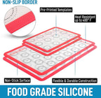 Zulay (Set of 4) Silicone Baking Mat - Macaron Silicone Baking Mats With Pre-printed Template Design - Non Stick & Reusable Silicone Baking Sheet - 2 Half Size + 2 Quarter Size (Red)