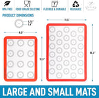 • MACARON GAME CHANGER: Bake the perfect batch of delicate and airy French macarons with our silicone baking mats. We have designed these with a pre-printed template that lets you make evenly-sized macarons. This set of 4 mats (2 of each size) is also great for baking meringue cookies, bread, candy, brownies, and other baked goods.