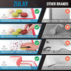 • NON-STICK AND REUSABLE: A batch of macarons with no browning? Sign me up! Say goodbye to scrubbing the mess off your pans, as these silicone mats allow even heat distribution, resulting in even cooking and no burned or undercooked areas. This reusable baking mat set can be used multiple times and gives much better baking results than aluminum foil or parchment paper.