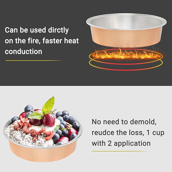 • 【Convenient Use】With the good quality aluminum foil material, you can directly put the pie pan on the fire to use (Do not put the empty pan on the fire), faster heat conduction and reduce the use of electricity.