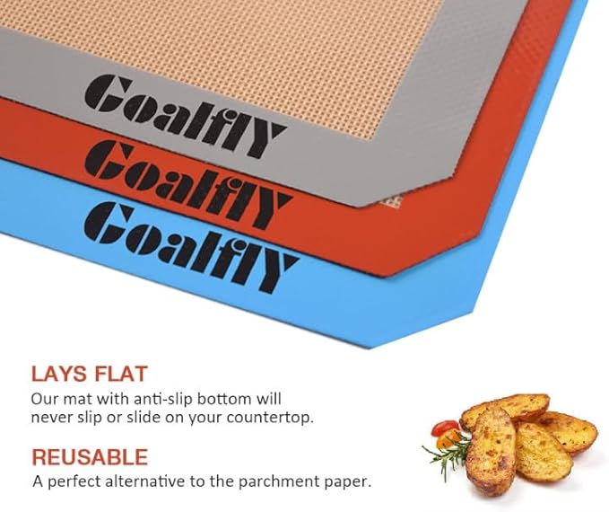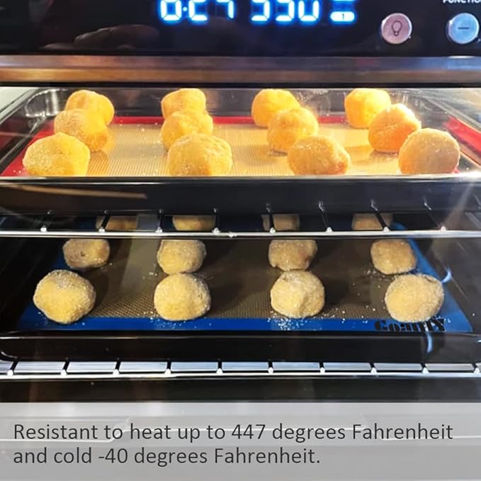 • Set Includes: This set includes 3 pcs silicone baking mats (11.8 x 8.5 inches); Baking mat is made of silicone and fiberglass; These baking mat are smooth, easy to clean, meet the daily use of the family. Use temperature range of -40°F to 447°F