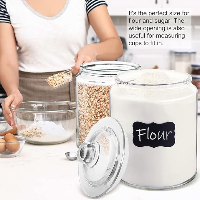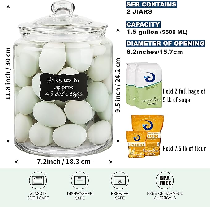 1.5 Gallon Glass Canister, 2 Pack Cookie Jar & Candy Jar with Airtight Lid, Heavy Duty Glass Canisters for Kitchen, Suitable for Flour, Sugar, Rice, Pasta, Beans, Laundry Room Storage