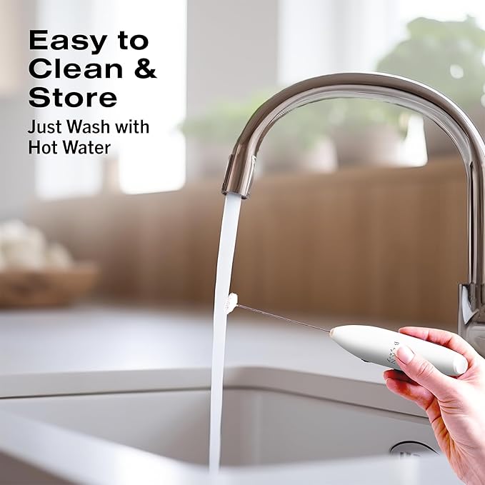 • VERSATILE - Looking for the best milk frother for coffee? Our electric whisk expertly blends cappuccinos, matcha lattes, macchiatos, protein powder shakes, smoothies, and more. It can even whisk your eggs!