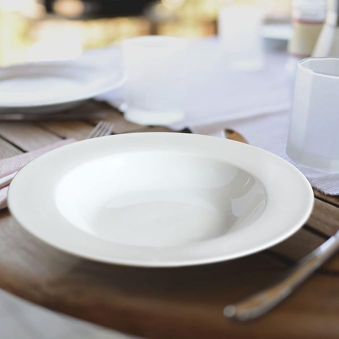 • 【Design for your style】1.5 inches depth, the recessed center area to keep the dishes or sauce from spilling out of the white plates and bowls set. Not too deep, not too shallow and with rim design that make the food cool quicker and easier for you to scoop the last drop. 8 oz amount are good for people who wants controlled portion. Perfect size white pasta bowls that can be dressed up for more formal dinners, or dressed down for every day casual meals.
