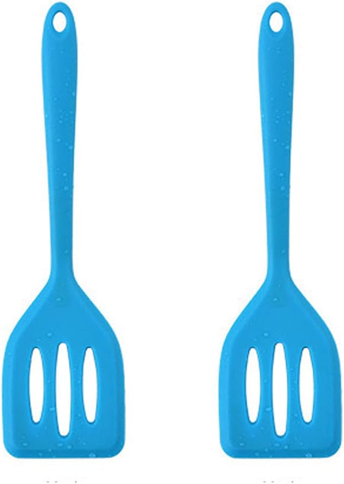 2Pack Small Silicone Turner High Heat Resistant Slotted Spatula for Fish, Eggs, Pancakes and More (12 IN, Blue)