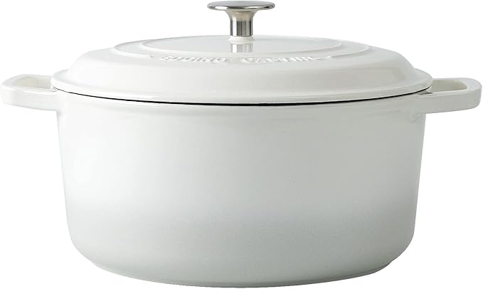 Enameled Cast Iron Dutch Oven Pot With Lid, Dutch Oven for Sourdough Bread Baking Round Pot Dule Handle, 6 Quart, White