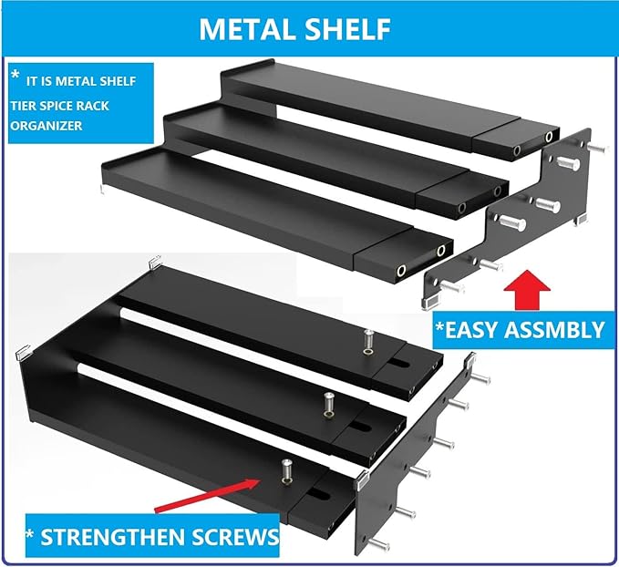 • ⭐【3 TIERS】 Three tiers of this spice rack, designed to provide you with both space and visibility so you can store the items you need in the best way possible. The different levels help you read the labels clearly and the open design means you can easily reach for whichever spice you require.