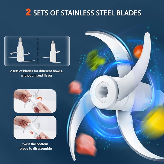 • Better Performance: With a 400W motor and sharp stainless steel blades, this food processor allows you to chop, blend, puree, mix, and mince a variety of ingredients in no time. Its unique blade design with 4 layers ensures even cutting, providing better performance compared to other food processors