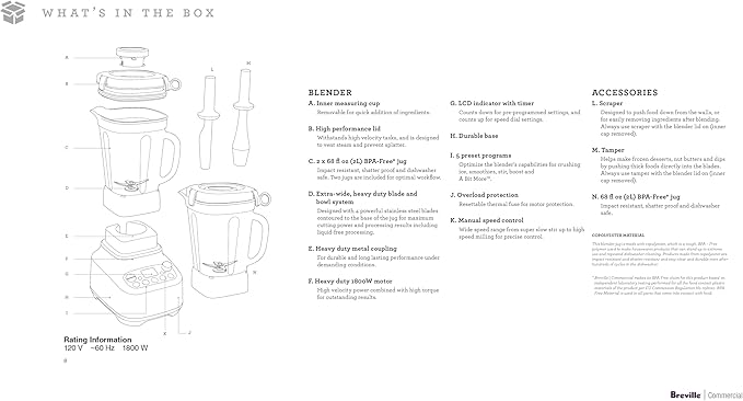 Breville Commercial Super Q Pro Blender, Brushed Stainless, CBL920BSS1BNA1, 68 oz Capacity, Brushed Stainless Steel