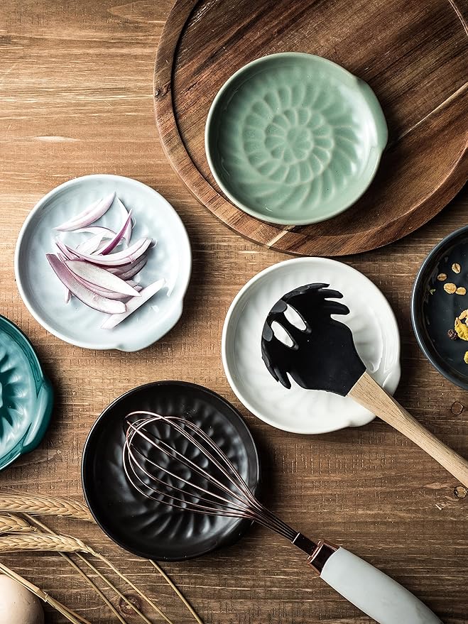 • With a high-density glaze coating, the ceramic utensil holder is so smooth that you can simply put the spoon rests in the dishwasher or simply scrub it by hand. The round and slotted design allows the spoon rest to store most kitchen utensils without taking up too much space in the cabinet