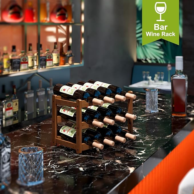 BMOSU Bamboo Wine Rack Wine Storage Cabinet Shelf 12 Bottle Wine Racks Countertop Sturdy for Kitchen Dining Room Pantry - 3 Tiers Wine Rack(Brown)