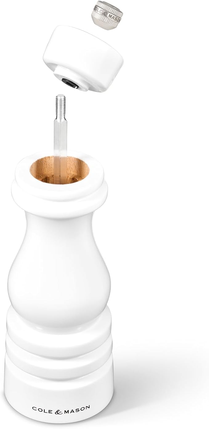 Cole & Mason London Refillable Spice Mill - Kitchen & Home Accessory - Table Salt Grinder - Salt Mill with Ceramic Mechanism - 7", White Gloss