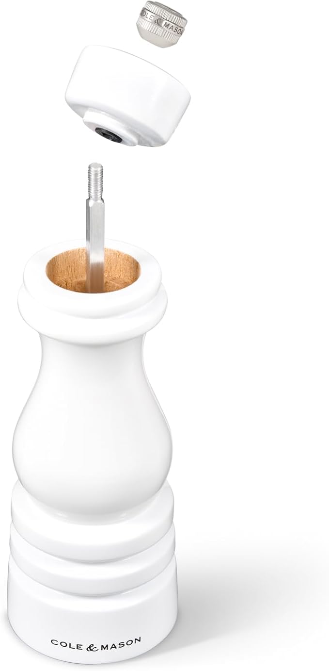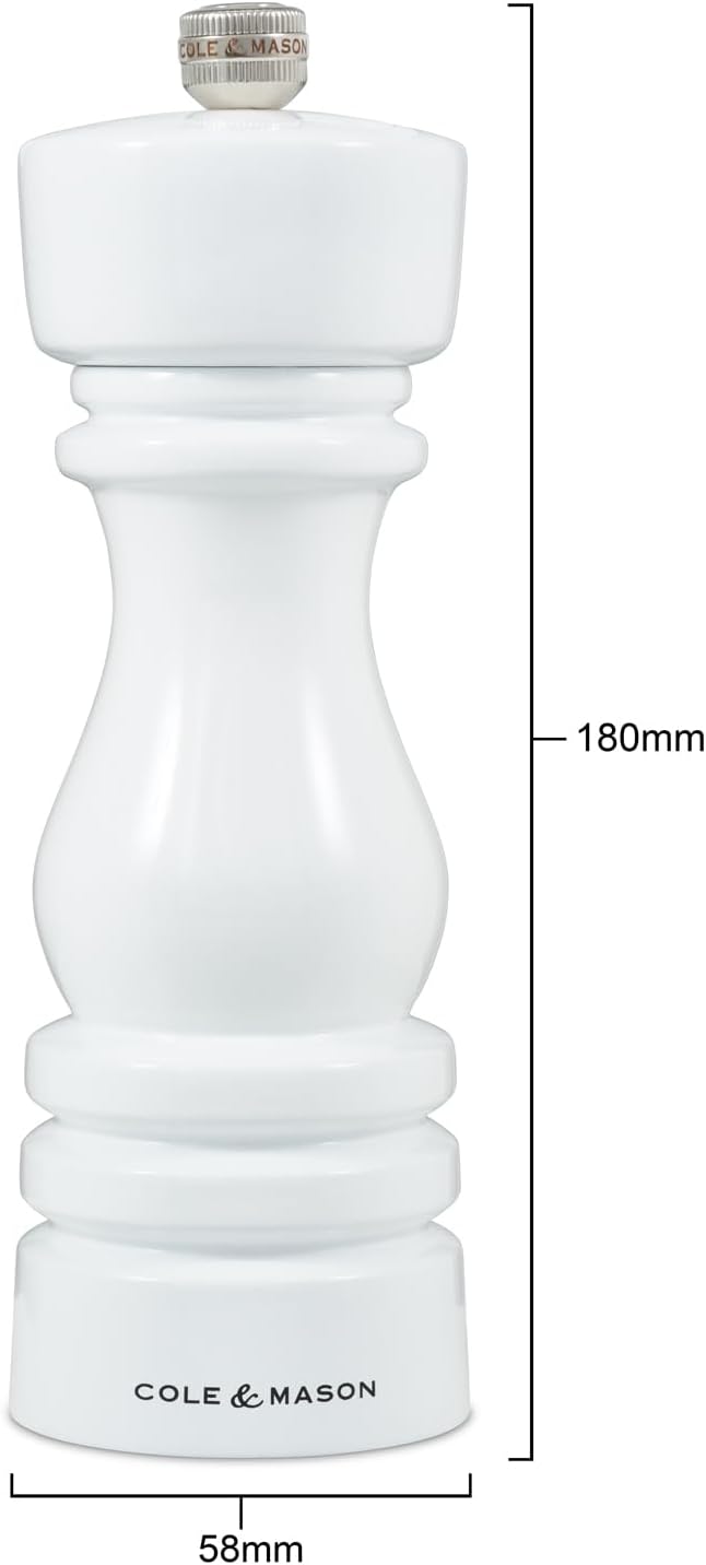 Cole & Mason London Refillable Spice Mill - Kitchen & Home Accessory - Table Black Pepper Grinder - Pepper Mill with Carbon Steel Mechanism - 7", White Gloss