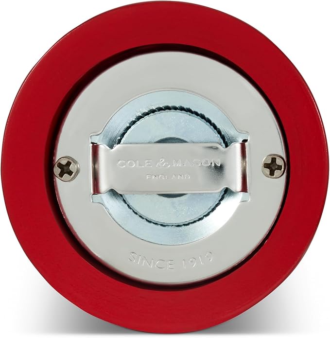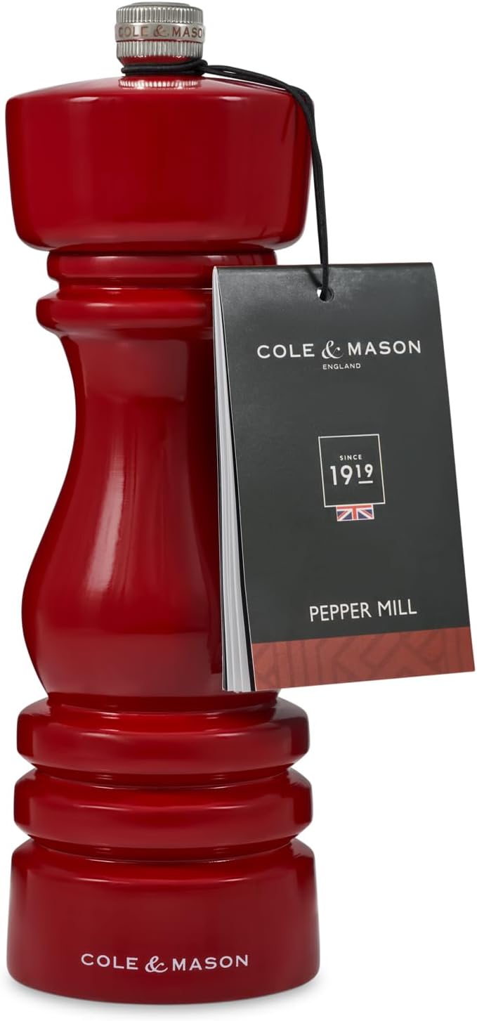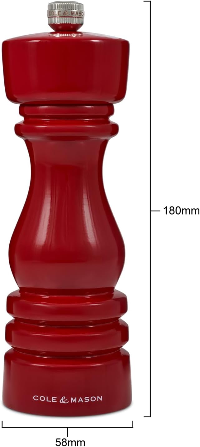 Cole & Mason London Refillable Spice Mill - Kitchen & Home Accessory - Table Black Pepper Grinder - Pepper Mill with Carbon Steel Mechanism - 7", Red Gloss