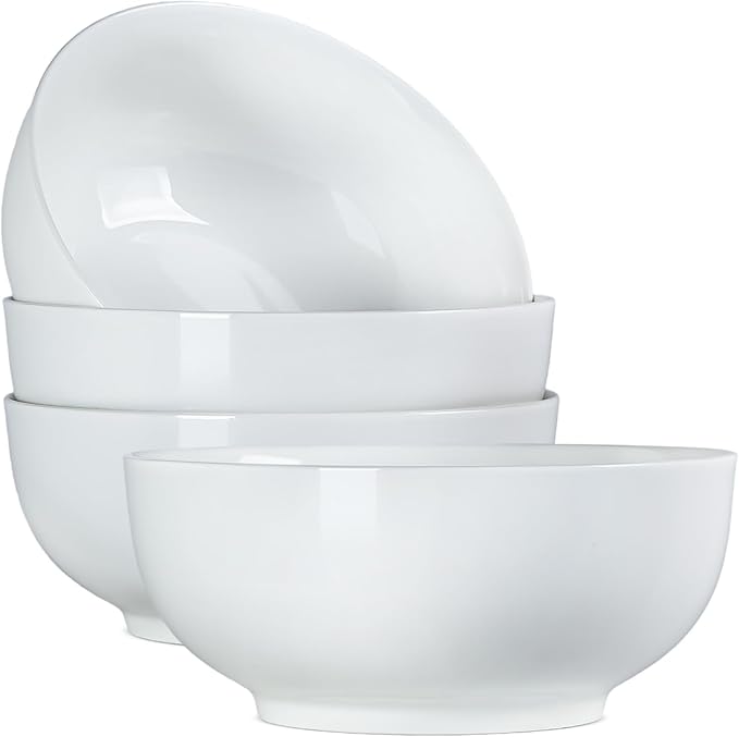 Zscera 40 oz Soup Bowls, Pho Bowls, Salad Bowls, Cereal Bowls, Durable Porcelain Off White Bowls Set of 4, 7 Inch