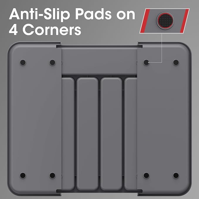 • CONSIDERATE DESIGNS: Anti-sliding pads on all four corners keep items securely in place, preventing any unwanted sliding under the dividers. The buckle design allows smooth sliding and easy adjustment while preventing the dividers run off the rails. Enjoy a seamlessly organized experience with AUJEN utensil holders!
